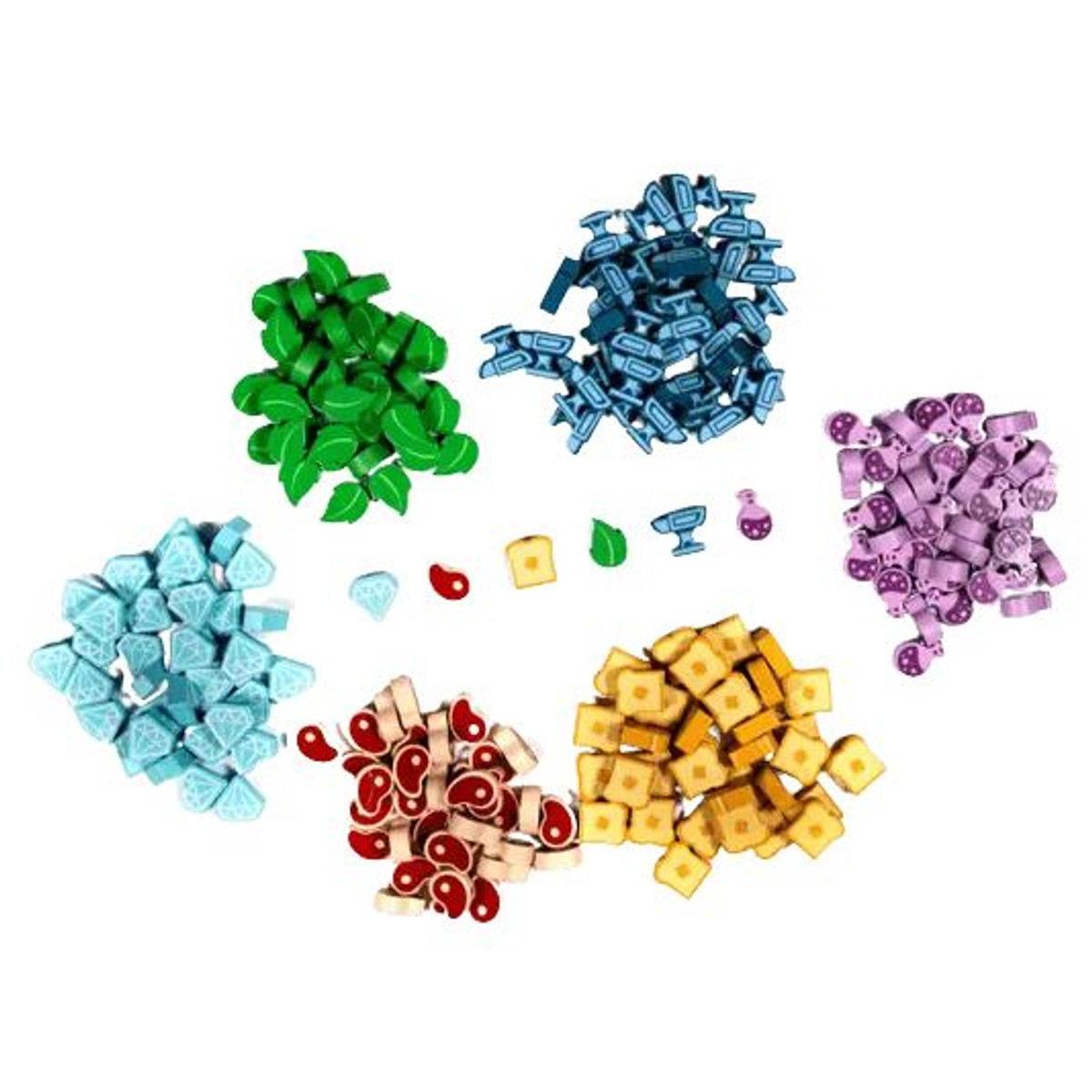A set of 210 wooden tokens each in clear resealable bags.